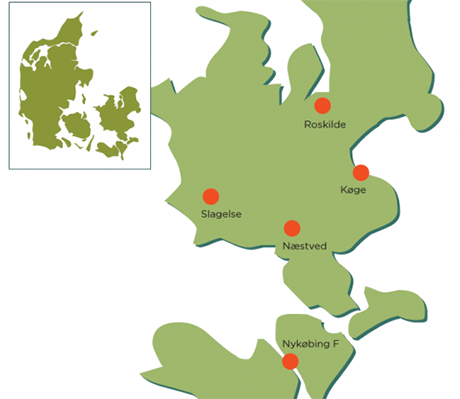 Located: Roskilde, Koge, Naestved, Slagelse, Nycobing
