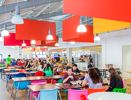 Studentii sunt cazati in camere cu baie privata in resedinta construita recent. Camerele sunt grupate in blocuri, aprox. 9 la numar. Pentru fiecare bloc exista o bucatarie comuna si o camera de recreere. Mesele sunt servite de 3 ori pe zi. In timpul excursiilor, elevilor li se ofera pranz la pachet.