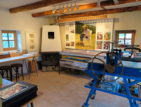 «Drawing, Painting & Printmaking» Основной акцент в этом курсе сделан на рисование, живопись и изучение различных техник создания графики (гравюры, литографии). Занятия живописью и рисованием, как можно чаще, проводятся вне учебных помещений на природных ландшафтах, это позволяет студентам лучше познакомиться с традиционными и современными методами работы на открытом воздухе и написанием пейзажей акварелью, гуашью и маслом. Работая с цинком, медью и стеклянными поверхностями студенты имеют возможность создавать гравирование сухой иглой и окрашивание с помощью портативного гравировочного пресса. Помимо деревушки Les Tapies, поселок в окрестностях St. Pierreville ошеломляет своей великолепной архитектурой, и может стать одним из главных лейтмотивов обучения для учащихся.