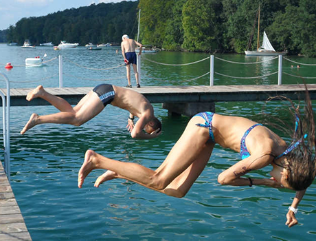In aceasta tabara va asteapta nenumarate distactii si jocuri sportive in aer liber, chiar pe malul lacului! In fiecare zi studentii pot practica: inotul, voleiul, fotbalul, jocurile de plaja. Pe timpul saptaminii va puteti reincarca bateriile de la lac si padure, iar in weekend de la calatoriile in Berlin, excursii (Coloana Victoriei, Parcul de distractii Kletterwald, Potsdam, Aquaparc) si shopping.