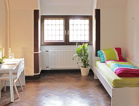 Студенты размещаются в общежитии, обустроенном в историческом замке, в двух, трех и четырехместных комнатах с удобствами на этаже.