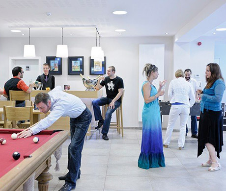 Проживание организовано в резиденции на территории школы, уютная одноместная комната с удобствами, питание полный пансион (только в будни) вместе с преподавателями. В течение дня предлагаются напитки, бисквиты. При отсутствии свободных мест в резиденции школы, предлагается проживание в отеле соответствующей категории.