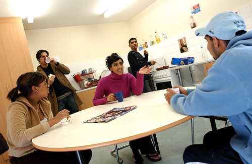 Студенты проживают в студенческой резиденции в одноместных комнатах с удобствами. Комнаты объединены в блоки, на каждый блок приходится общая кухня и зона отдыха.