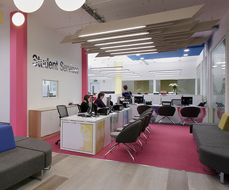 resedinta studenteasca (pentru 18+ ani). Studentii sunt cazati in camere de 1-2 persoane, cu baie si wc comune. In resedinta sunt bucatarii, camere de recreere pentru studenti, unde acestia pot juca ping pong, socializa cu prietenii sau privi TV. Costul chiriei este de 95 GBP/saptamanal, cu conditia incheierii unui contract pe 1 an de studiu. Aditional, studentii achita o garantie (returnabila) de 250 GBP. Alimentatia ramane pe cont propriu: fie gatit, fie la una din cafenelele colegiului.